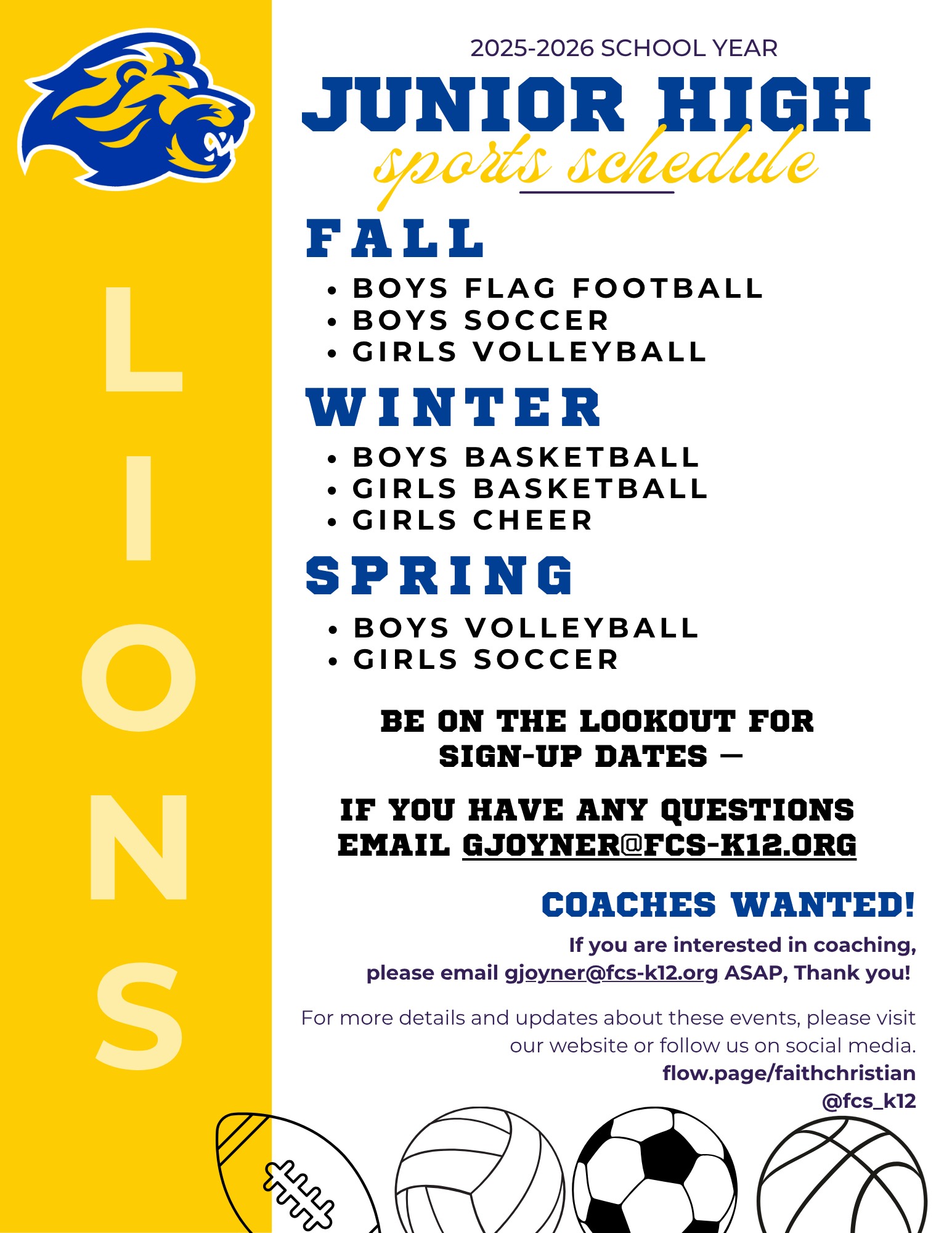 If you are interested in a position, please email the Athletic Director, Grant Joyner gjoyner@fcs-k12.org